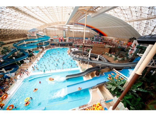 高低差 長さ日本一 ビル10階分の高さからのスライダーです。滑っているときに水しぶきが顔にかなりの量がかかり続けるので、子供は要注意です。